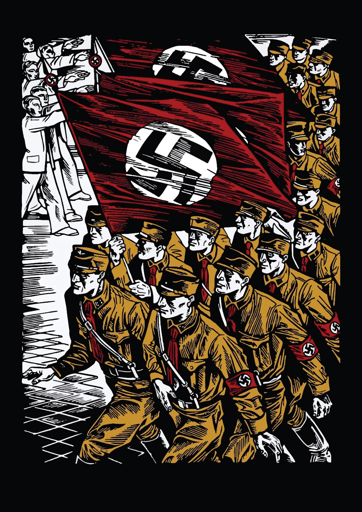 Dieses Plakat mit dem Titel „Der Sieg des Glaubens“ des Graphikers Richard Schwarzkopf wurde 1936 als Teil VI der Sammlung „Der Kampf der SA“ (auch bekannt als „Die Deutsche Passion“) veröffentlicht.