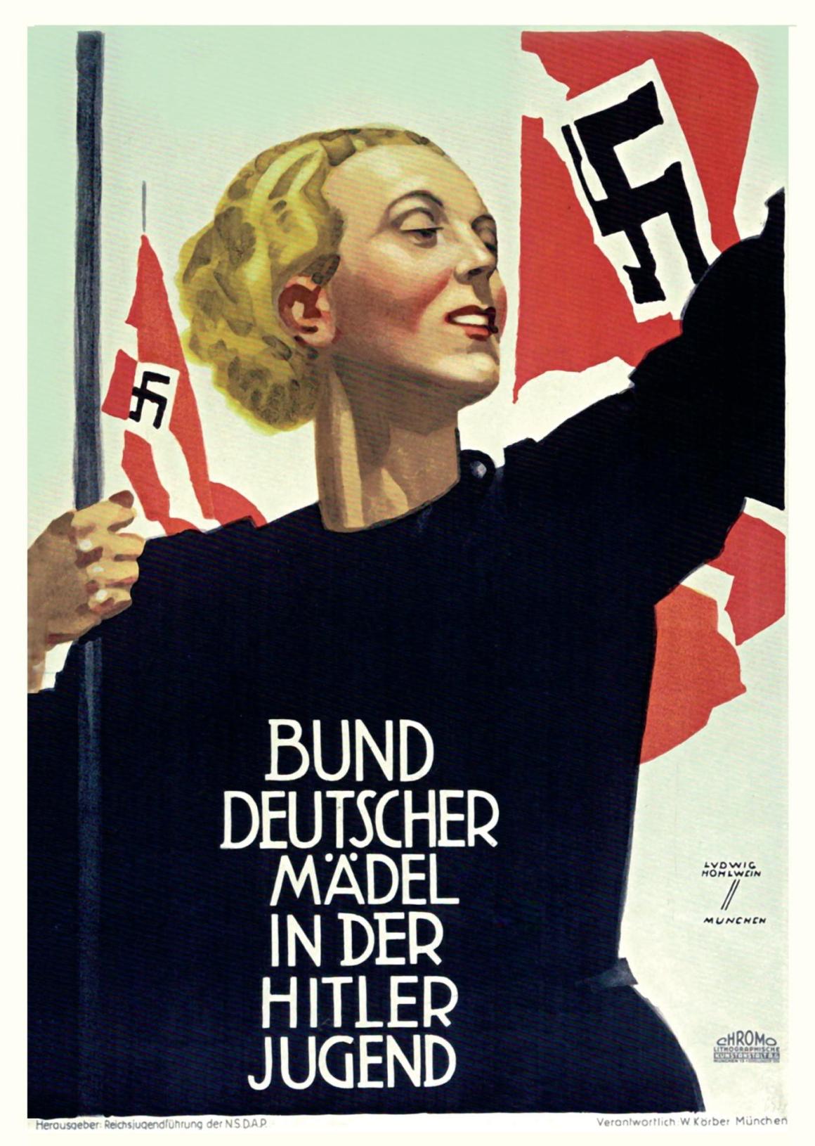 Bund Deutscher Mädel in der Hitler Jugend. Plakat zur Mitgliederwerbung. Graphiker war Ludwig Hohlwein, München, 1932. Herausgegeben von der Reichjugendführung der NSDAP.