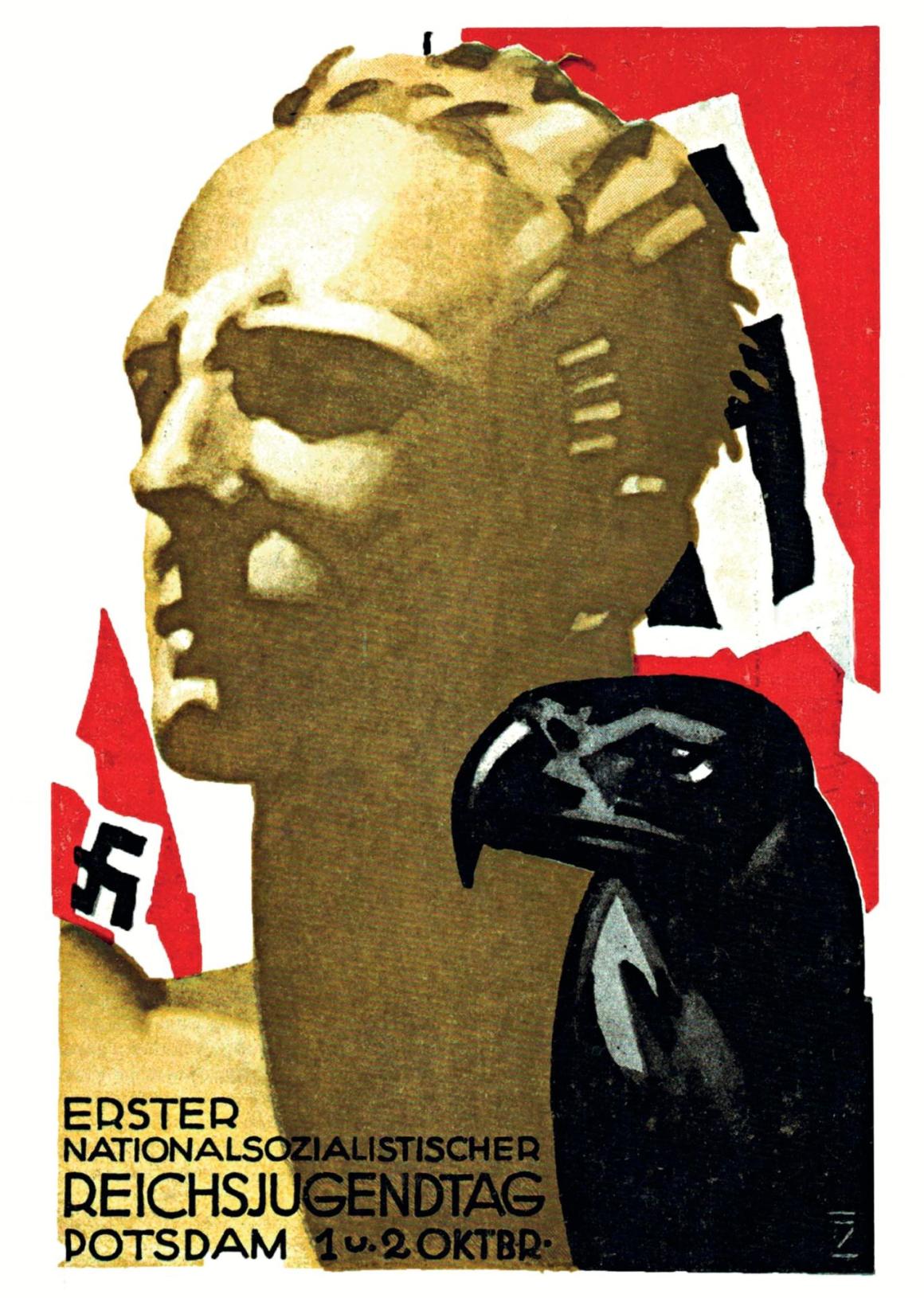 Das Plakat von Ludwig Hohlwein diente der Bewerbung des 1. Nationalsozialistischen Juzgendtages, der am 1./2. Oktober 1932 stattfinden sollte.